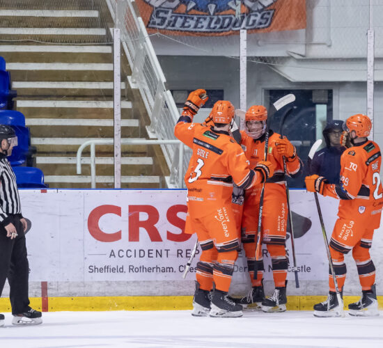 Sheffield Steeldogs produced an emphatic offensive performance to secure an 8–3 victory...