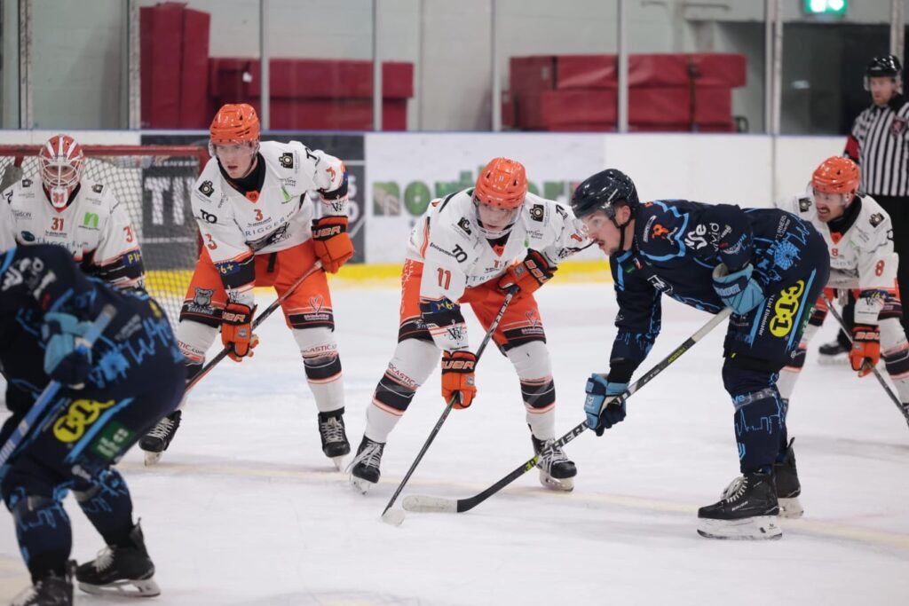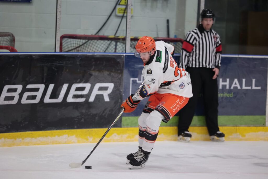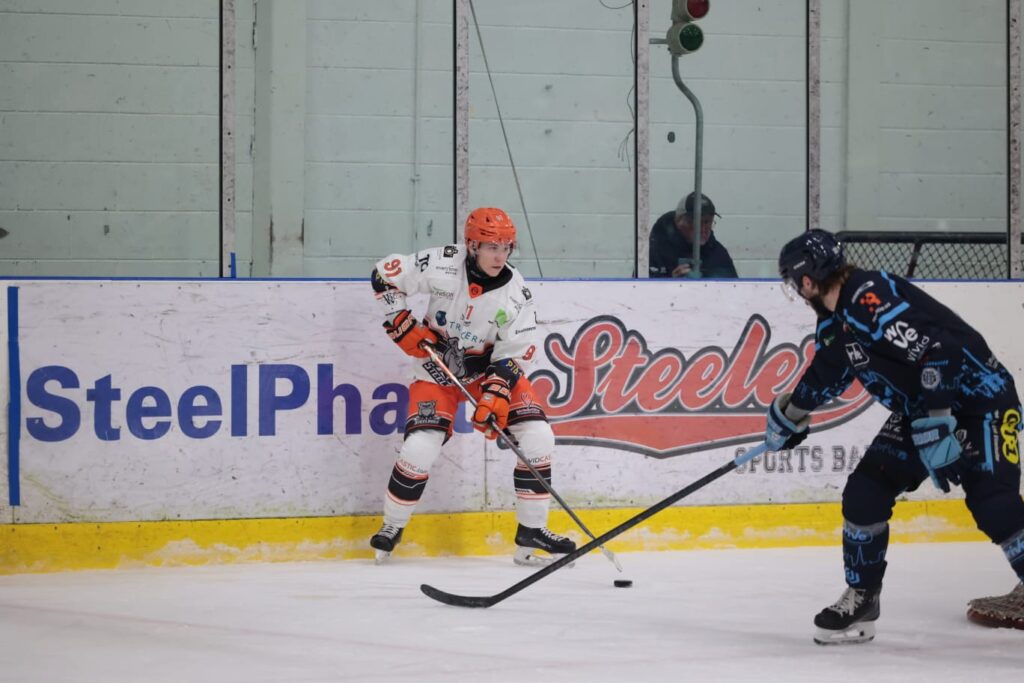 We were treated to goals from both the Steeldogs and Pitbulls in the second stanza. Ivan Bjorkly-Nordstrom scored the games opening goal at 30:16 with Jonathan Kirk & Liam Steele being the providers. A short while later Bristol got the game tied with a 5on3 powerplay goal from Jake Bricknell at 31:35. 40 seconds later the Steeldogs would regain the lead with Joonas Larinmaa breaking through 1-on-1 with Tommy Nappier squeezing the puck past making it 2-1 to the Dogs. Just over two minutes later Nathan Ripley gave the Dogs a 2-goal lead on the powerplay at 34:27 with Jonathan Phillips and Ivan Bjorkly-Nordstrom getting the assists. That wasn’t going to stop the Pitbulls as they hit back again, this time it was John Dunbar who found the back of Crowes net. After 40 minutes the Steeldogs led the Pitbulls 3-2.