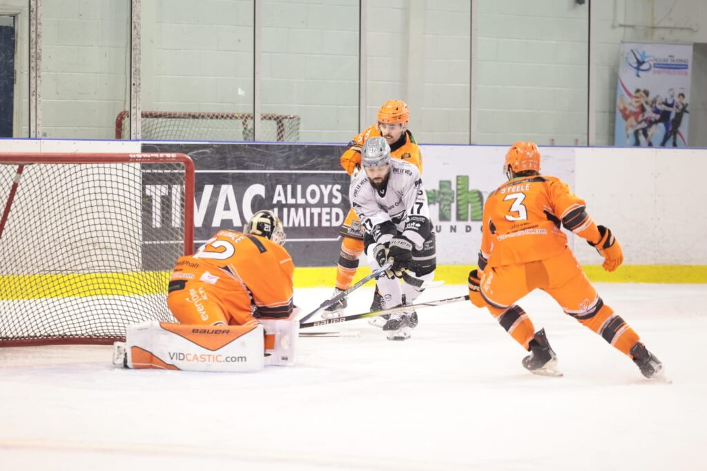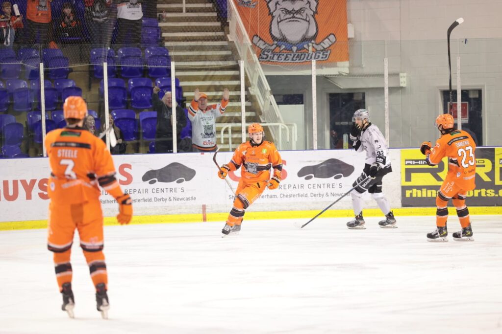 Final score: Sheffield Steeldogs 7-1 Hull Seahawks. Sadly there was some poor sportsmanship with no handshake between the Sheffield and Hull coach as the Hull coach quickly vacated the away bench after the final buzzer.